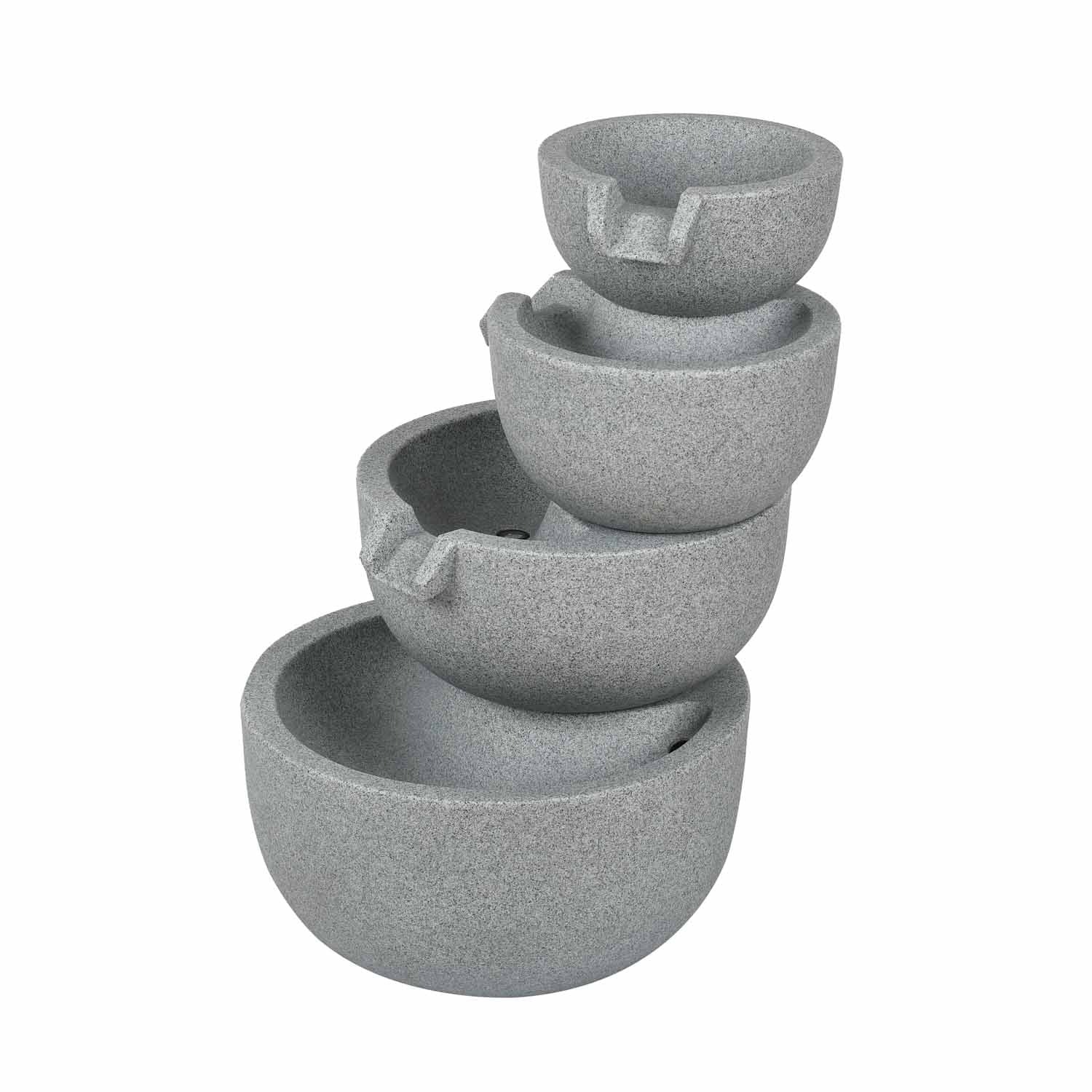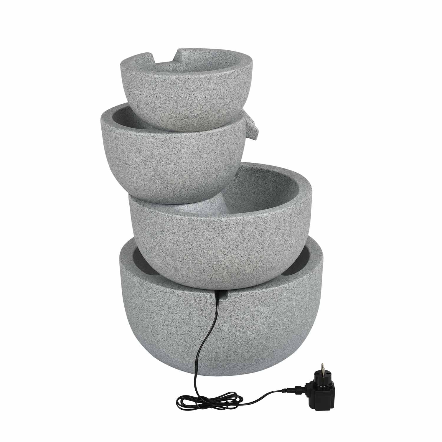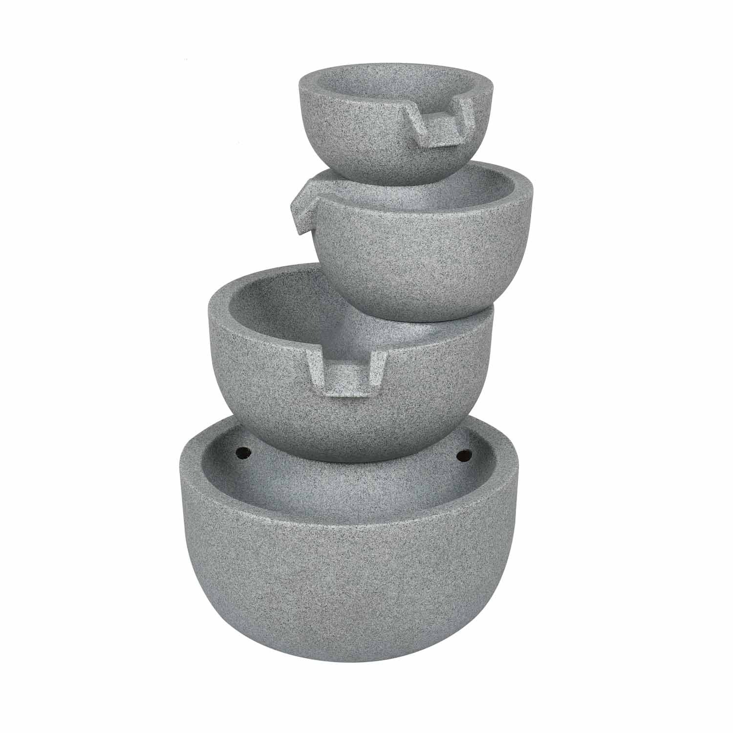Transform your living space with the Holiness Craft 4-Tier Cascading Water Fountain, an elegant decorative feature that brings tranquility to any setting. This sophisticated grey stone-look fountain creates a soothing ambience through the gentle sound of water cascading through four perfectly stacked bowls. Standing at 72 cm in height, this fountain makes a striking visual statement while remaining compact enough for various spaces. The durable construction combines resin, stone powder, and fiberglass to resist weathering and maintain its attractive appearance over time. Versatile for both indoor and outdoor placement, this fountain serves as a stunning centrepiece for gardens, patios, entryways, or living rooms. The strategically designed spouts ensure a gentle, continuous flow between the bowls, creating a mesmerising visual and auditory experience. Elevate your décor with this charming water feature that combines aesthetic appeal with the calming effects of flowing water—a perfect addition to create a peaceful sanctuary in your home or garden.