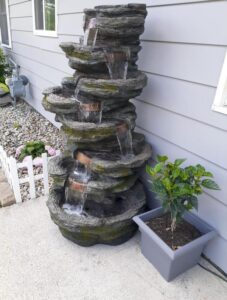 Create a soothing ambiance in your home with the Holiness Craft Fountain. The soothing sounds of a cascading water stream flowing down each tier and the warm glow of the LED light create a tranquil mood in your space, ideal for meditation or a romantic dinner. Thanks to the weathered pillars that resemble natural stone and real river rocks, this fountain features a rustic character that adds a touch of natural charm to your decor. This fountain Size is perfect for your office, bedroom, living room, hall, kitchen, and more.