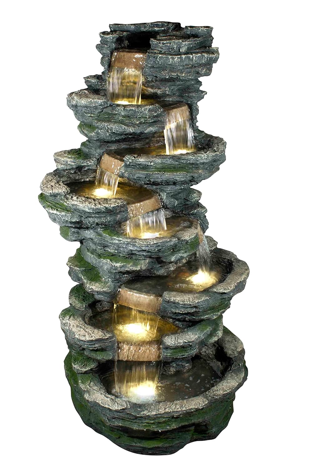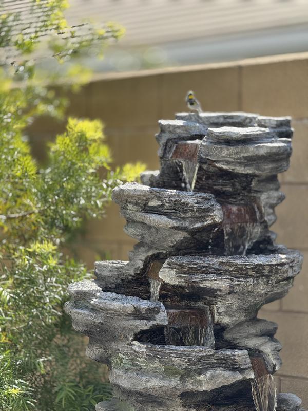 Create a soothing ambiance in your home with the Holiness Craft Fountain. The soothing sounds of a cascading water stream flowing down each tier and the warm glow of the LED light create a tranquil mood in your space, ideal for meditation or a romantic dinner. Thanks to the weathered pillars that resemble natural stone and real river rocks, this fountain features a rustic character that adds a touch of natural charm to your decor. This fountain Size is perfect for your office, bedroom, living room, hall, kitchen, and more.