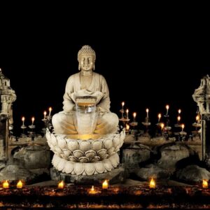 Holiness Craft Big 4.6 feet Mystic Large Lotus Buddha Fiber Water Fountain for Home Decor, Living Room, Garden-Yard Art, Decoration Gift Gifting, and Door Entrance (Black), Create a soothing ambiance in your home with the Holiness Craft Fountain. The soothing sounds of a cascading water stream flowing down each tier and the warm glow of the LED light create a tranquil mood in your space, ideal for meditation or a romantic dinner. Thanks to the weathered pillars that resemble natural stone and real river rocks, this fountain features a rustic character that adds a touch of natural charm to your decor. This fountain Size is perfect for your office, bedroom, living room, hall, kitchen, and more.